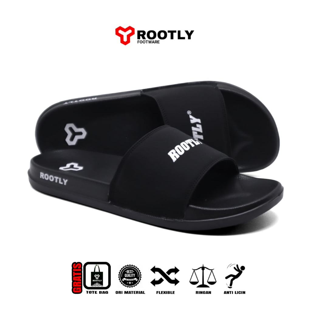 Rootly - Sandal Slipper Pria Simple Black white Terlaris