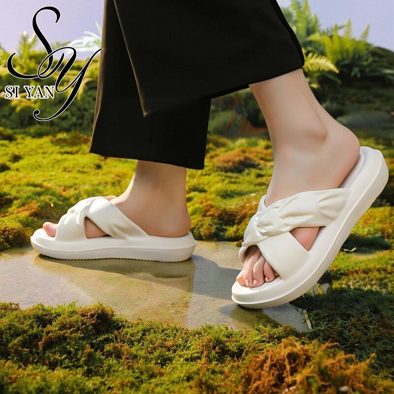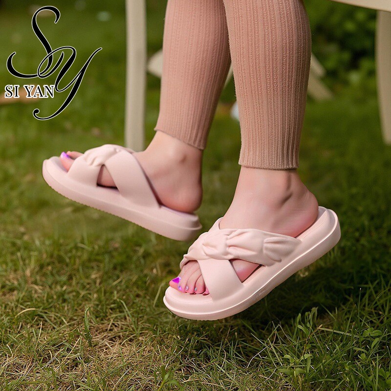 SI YAN 2025 Sandal Wanita EVA Jelly Selop Kekinian Sandal Flat Empuk Elastis Pria Slide Kasual