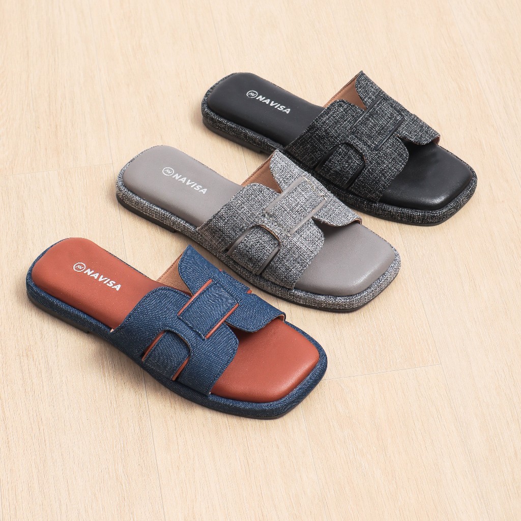 Navisa Sandal Flat Wanita Denim Empuk & Anti-Slip