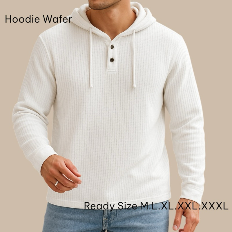 hoodie pria lengan panjang bahan waffle premium