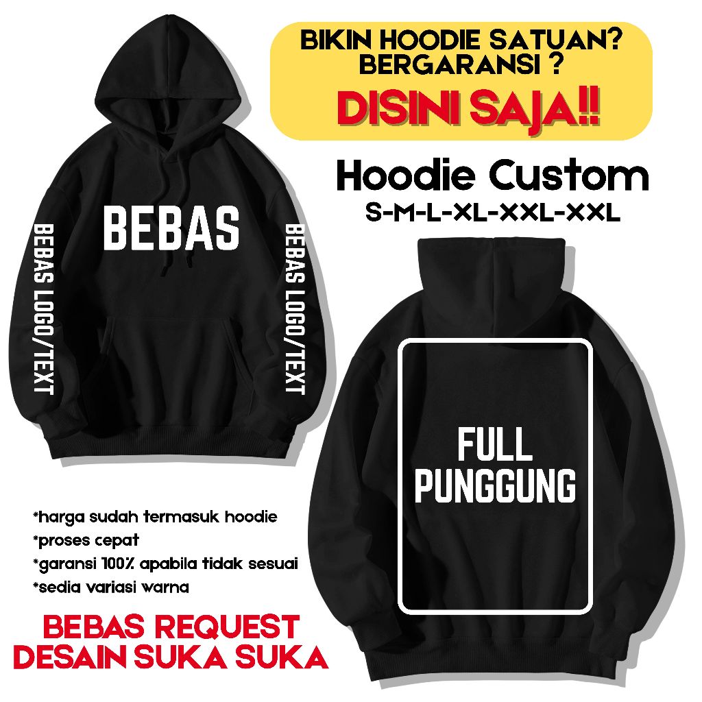 Hoodie Custom Desain Sendiri Satuan Kualiatas Premium Tebal Unisex Pria dan Wanita