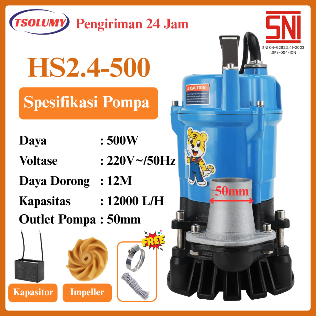 Tsolumy Pompa Celup Air Kotor HS.2.4.500 Manual Pompa Kolam Pompa Banjir Pompa Lumpur Cair 50mm