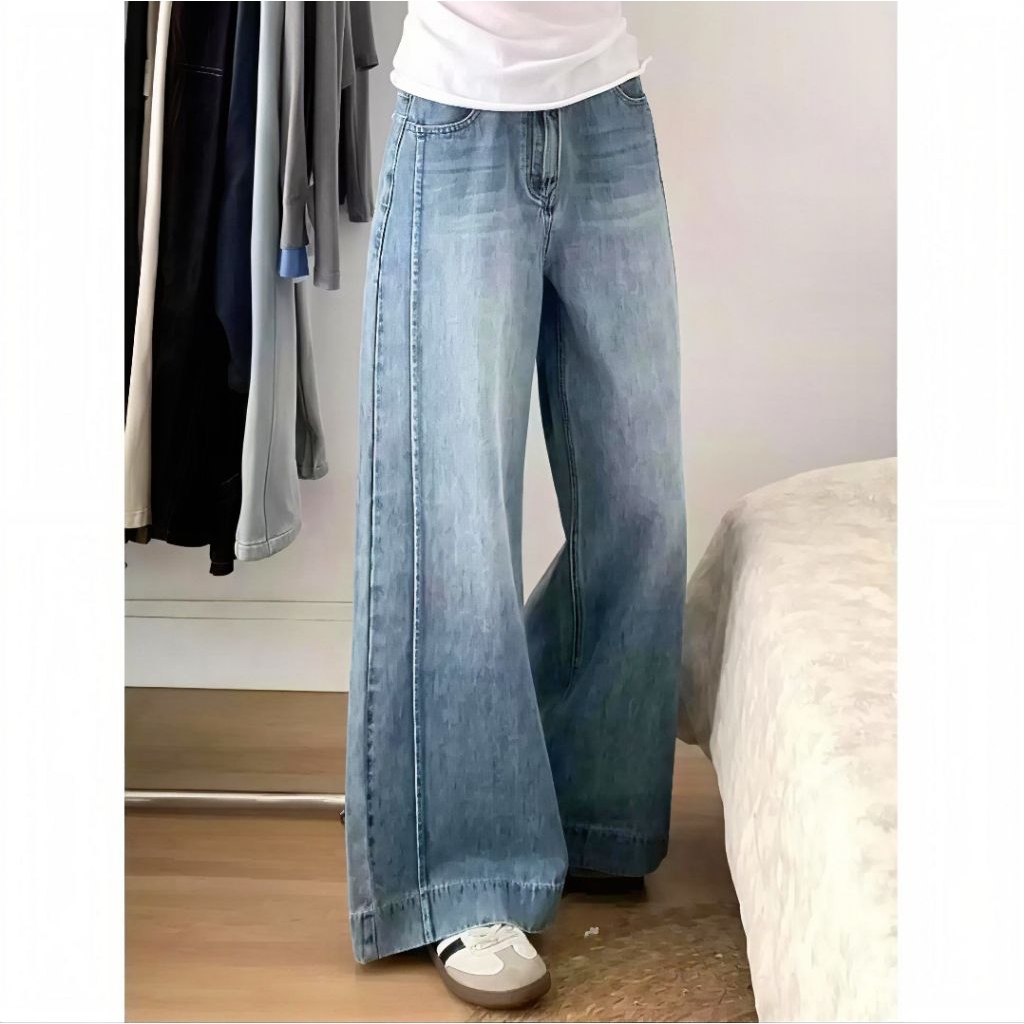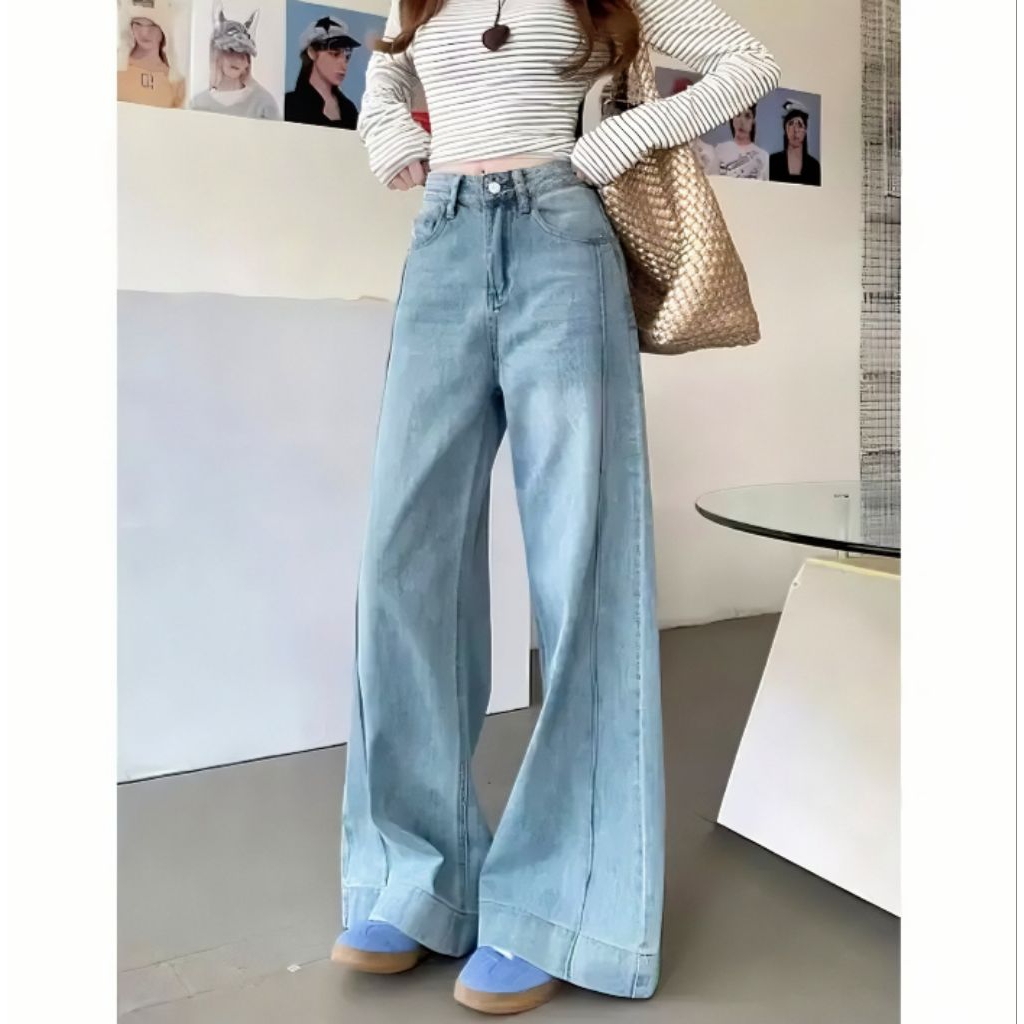 YOYO- New Biru Kekinian Highwaist Kulot Loose Celana Wide Leg Jeans Wanita Korea Style