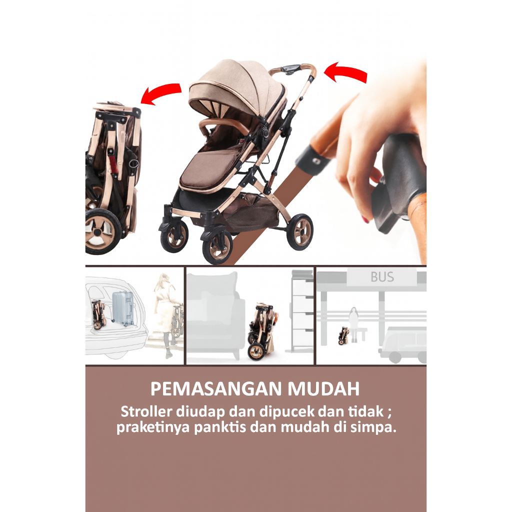 BEIGE Stroller Bayi 2 Arah Lipat Rebah Penuh & Duduk Ringan Usia 0-6 Tahun