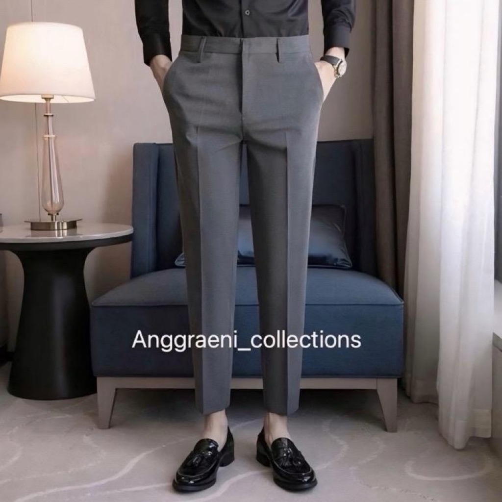 Celana Ankle Pants Kantor Formal Pria Slimfit Celana Kerja Bahan Woll Anti Kusut