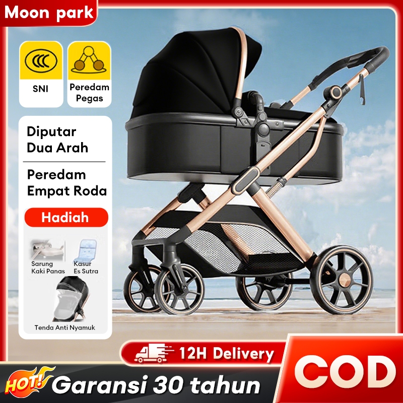 BEIGE Stroller Bayi Premium Stroler Bayi 0 5 Tahun Rebah Penuh & Duduk Lipat 4in1 Kereta Dorong Bayi