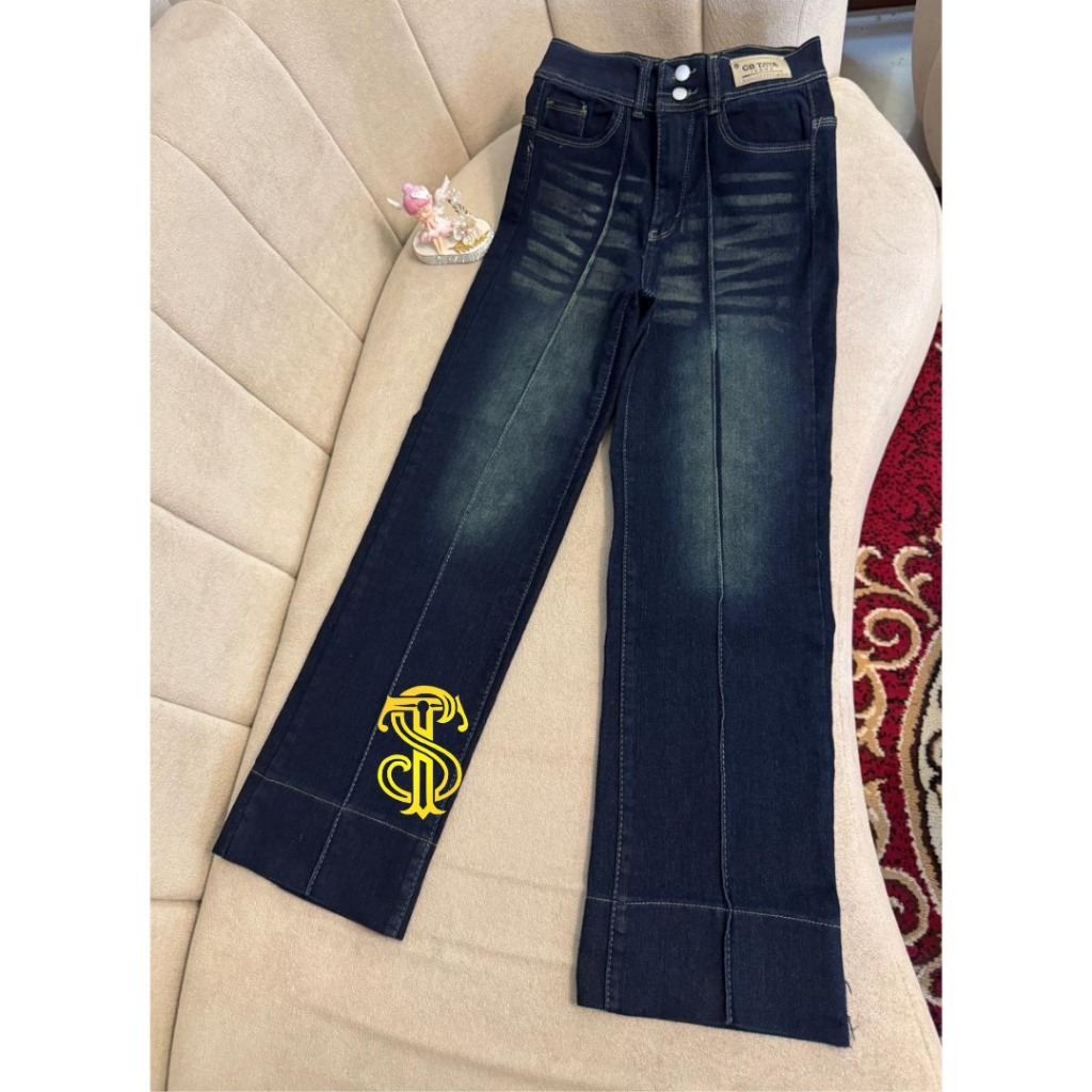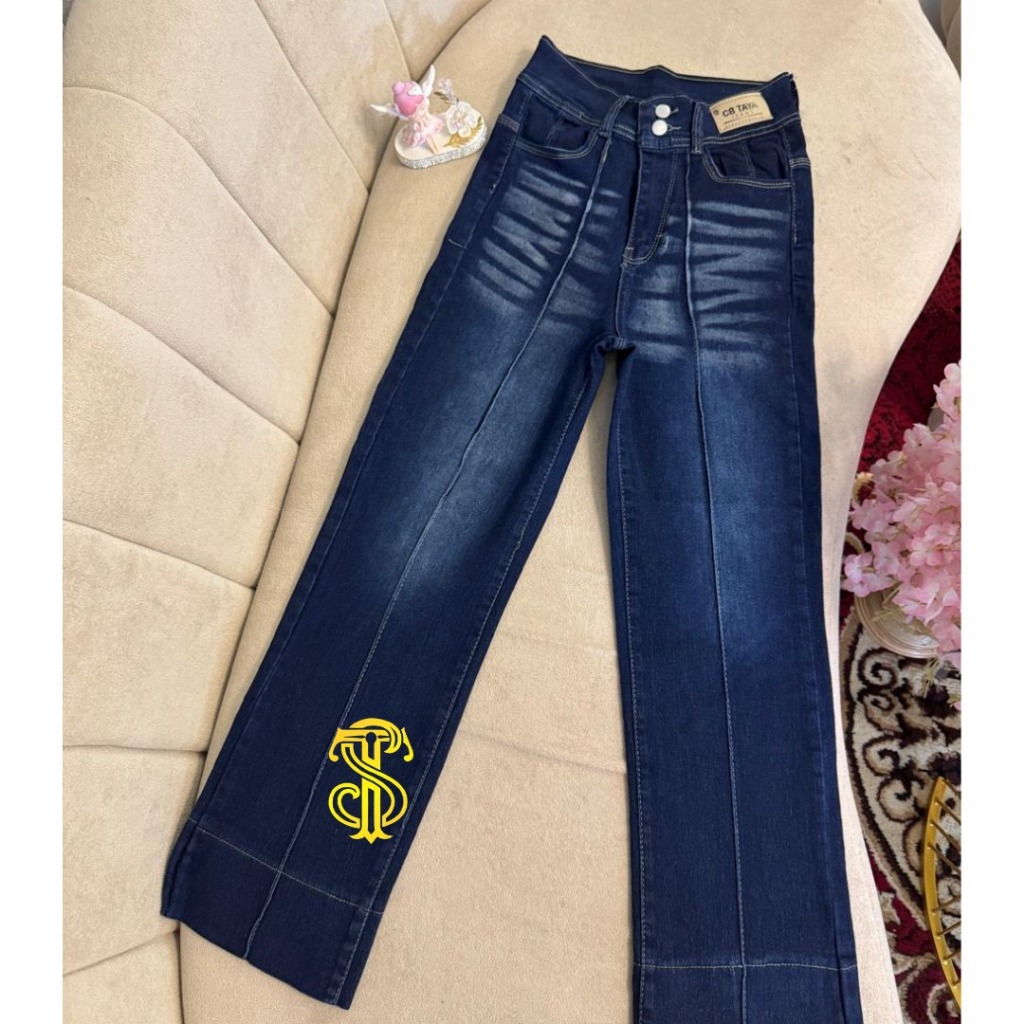 Celana Highwaist Loose Jeans Wanita Lipat Lebar Korean Style - Straight Jeans Baggy Stretch Soft - Celana Panjang Wanita