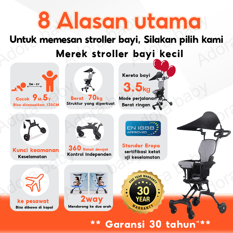 [Garansi 30 Tahun] Stroller Bayi Lipat Travelling 2 Arah Berat Maksimum 50kg Tahun perlengkapan bayi traveling