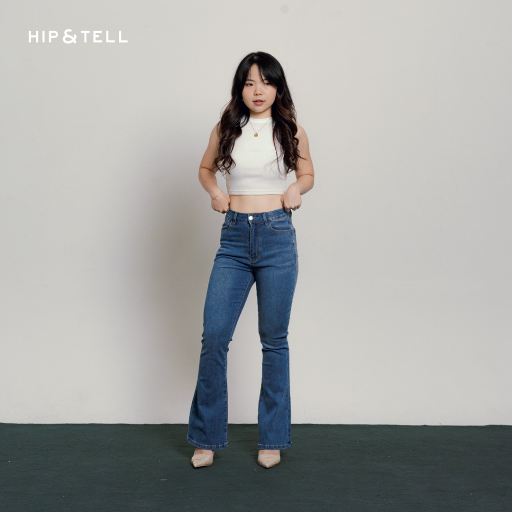 Hip&Tell | Petite Highwaist Cutbray Jeans | Kelly Jeans Dark Blue Light Blue Ocean Blue | Denim