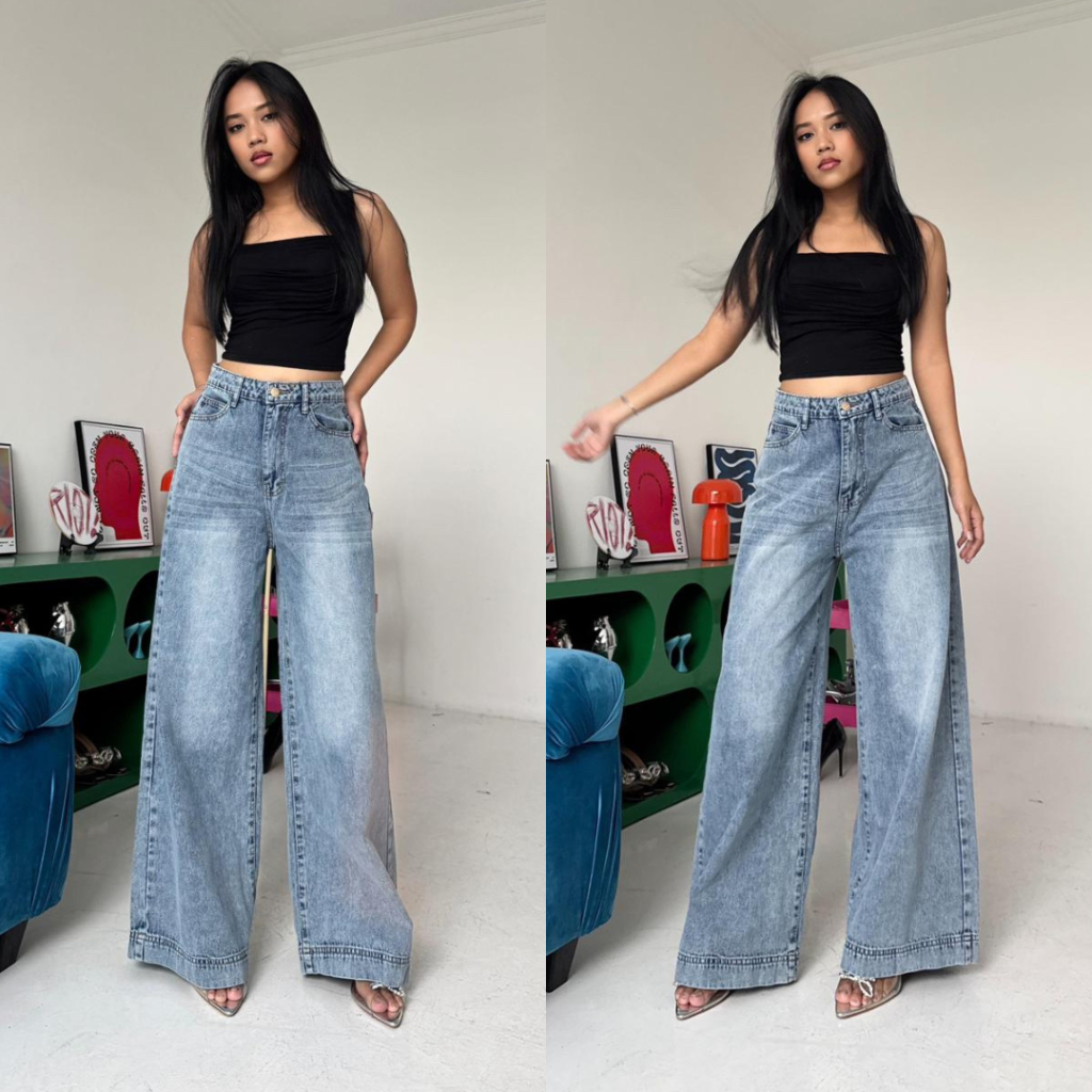 LADOUCE - Brianna High Waist Baggy Wide Jeans Celana Panjang Wanita Denim