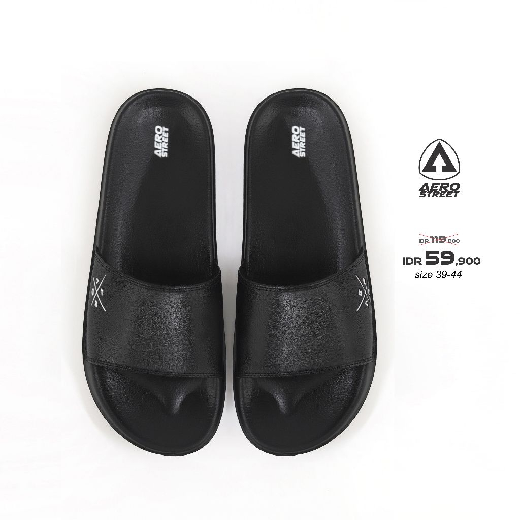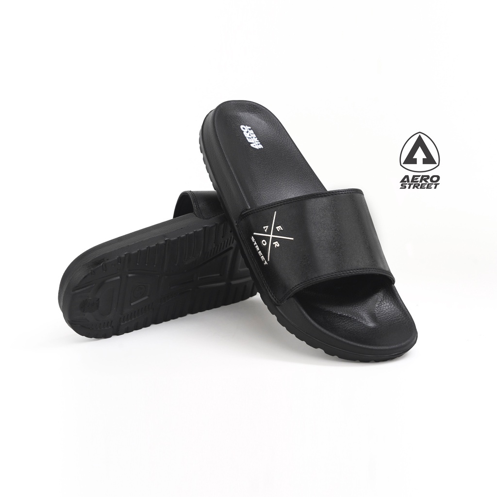 Aerostreet 39-44 Xenon Hitam Hitam - Sandal Sendal Selop Slip On Casual Pria Wanita Aero Street 22AAA0