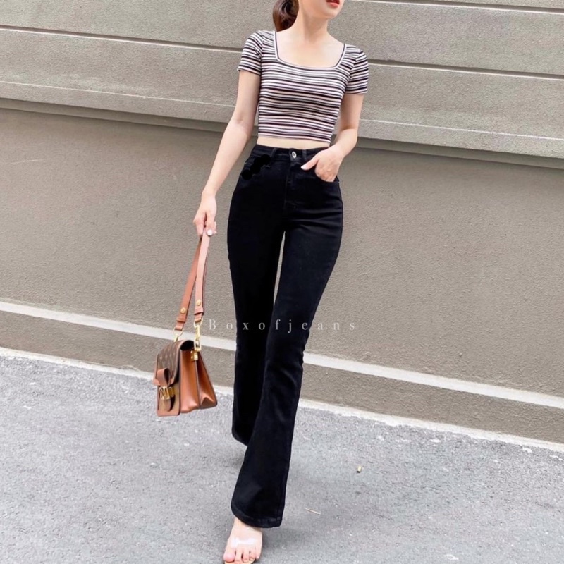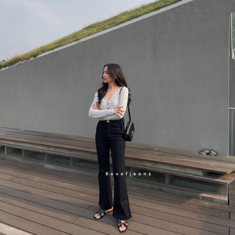 Boxofjeans - HW Flared / Cutbray Jeans - BLACK