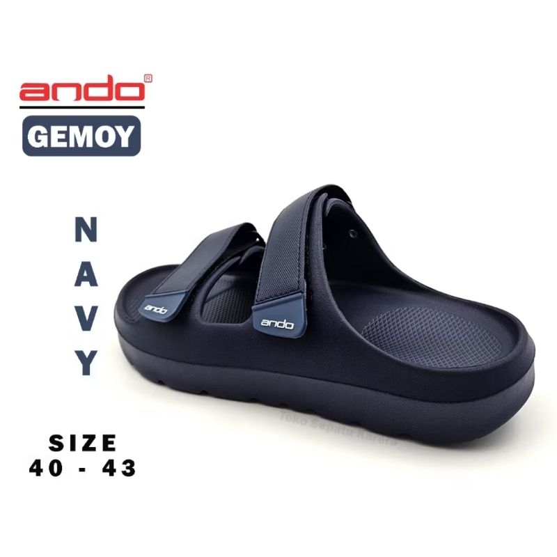 ANDO Sandal Selop Kokop Cowok Karet Casual Fashion Gemoy Hitam Navy 38 sd 44 Terbaru