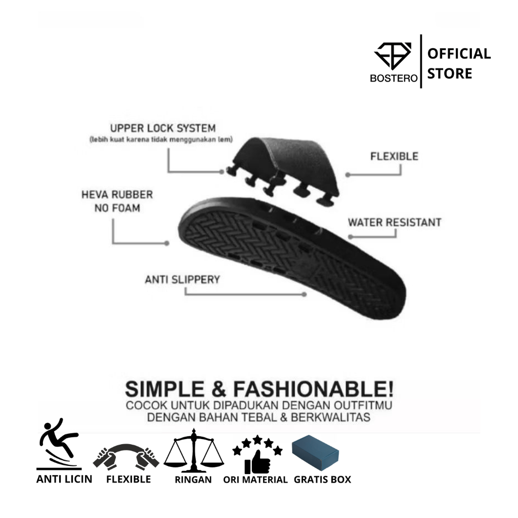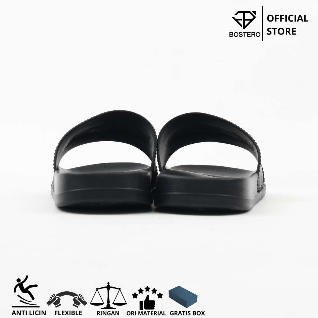 Bostero - Sandal Pria Full Black Slip On Ringan Size 36-43
