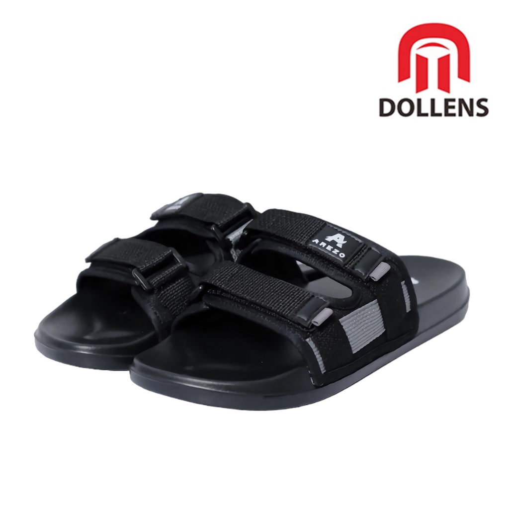 Sandal Slop Pria Distro Strap Aesthetic Arezo - Hitam/Abu-abu/Merah