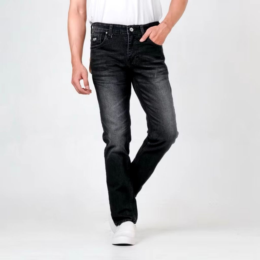 Celana jeans pria panjang slimfit skinny wisker hitam blackjazz denim premium