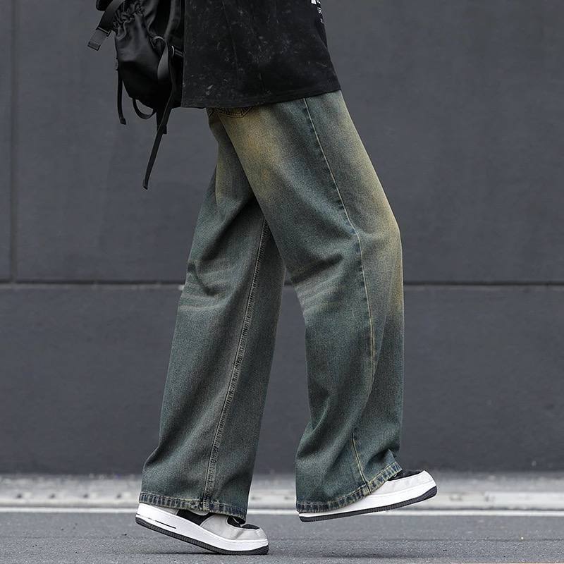 Baggy Jeans Gombrong Pria Celana Panjang Jeans Skena UNISEX Whisker Biru Retro Premium