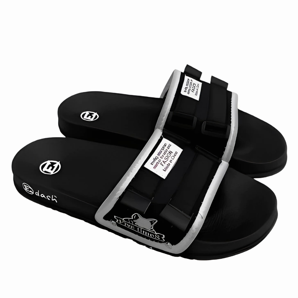 Edash - Sandal Selop Sol Hitam Bahan Pvc Size 36-43 Five Time Ringan - Sandal Pria Dan Wanita Dewasa