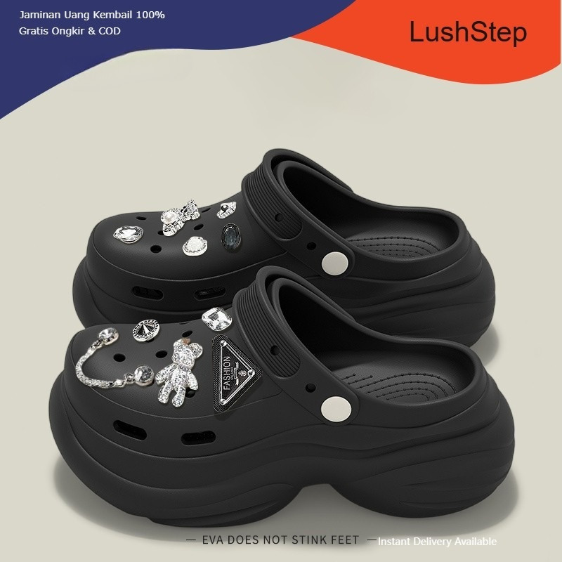 LushStep Classic Bae Clog Cross Sandal wanita platform Chain Embellished Tinggi 7-8cm