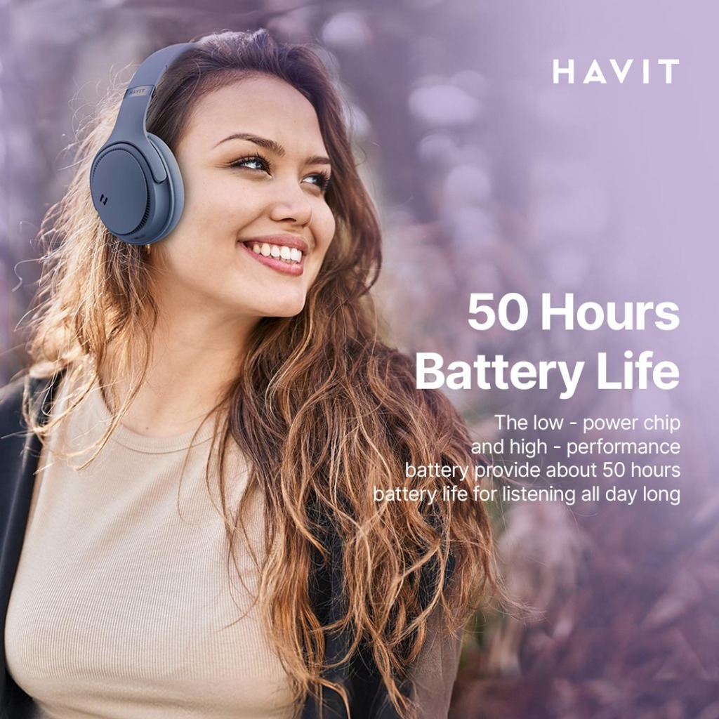 Havit H630BT PRO ANC Wireless Headphones Crystal Clear Calls Dual Device Connection - Blue