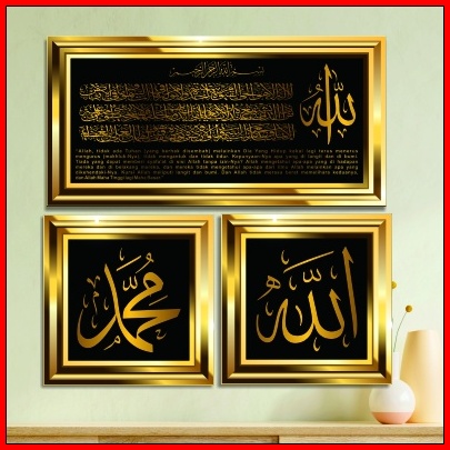 Hiasan Dinding Islami Kaligrafi Hiasan Dinding Pajangan Dinding Ruang Tamu 3in1 Ayat Kursi Allah Dan Muhammad C 169