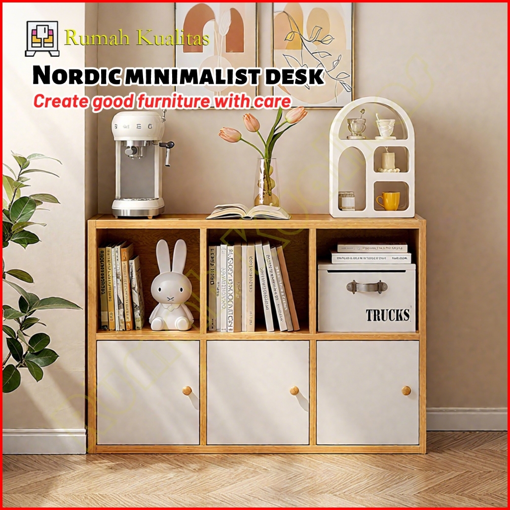 Rumah Kualitas Lemari Buku Kayu Estetik Dengan 6 Kompartment Rak Pajangan Multifungsi Untuk Anak 90 24 60cm