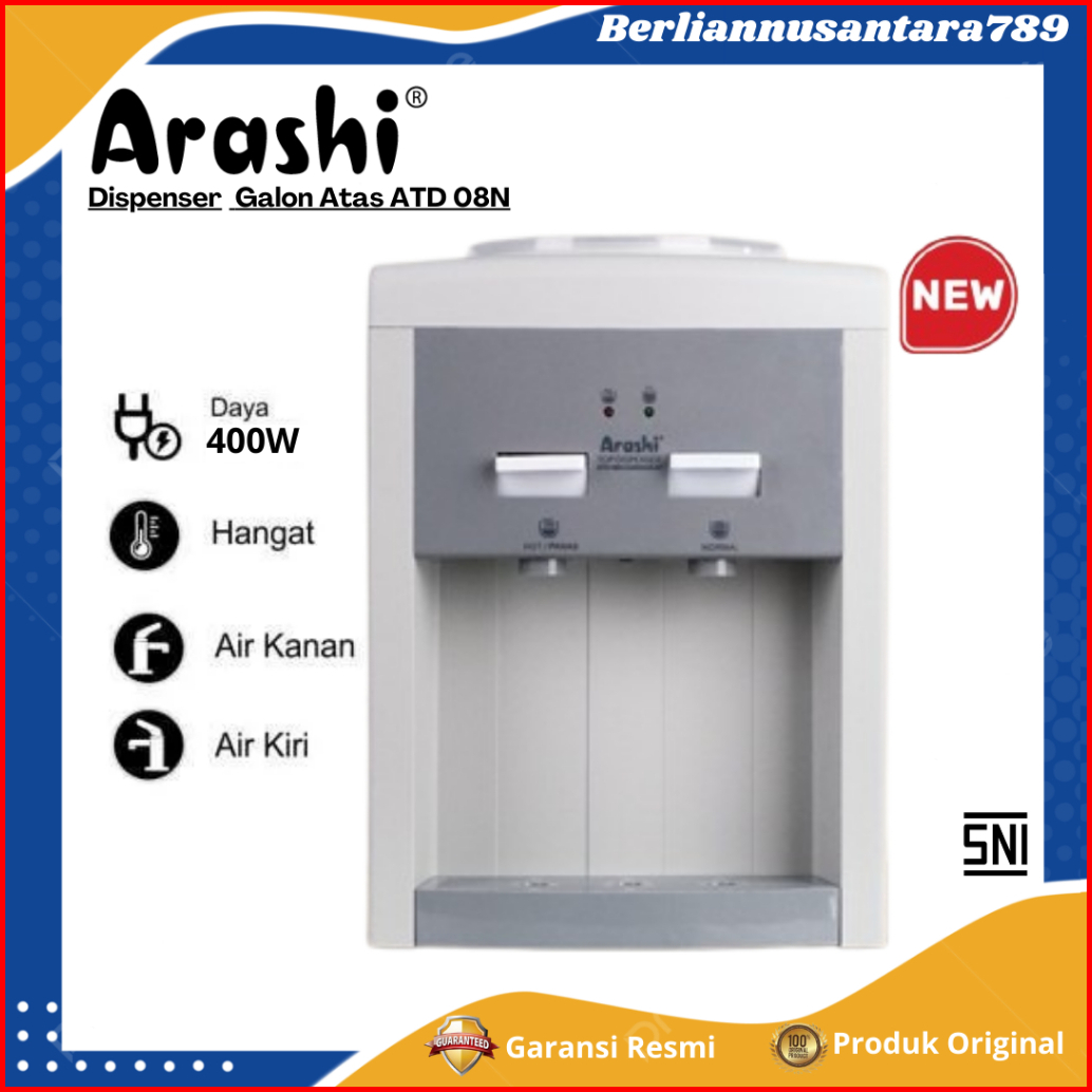 Arashi Dispenser Meja Air Galon Atas Atd 08n Normal Hot Warna Dark Gray - Garansi Resmi