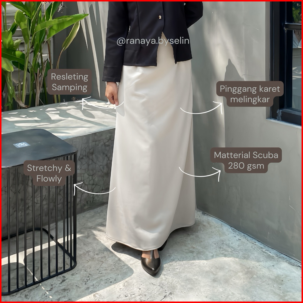Ranaya-a Line Skirt Rok Basic Panjang Wanita Casual Bahan Scuba Premium Super Adem Tebal Flowly Kekinian