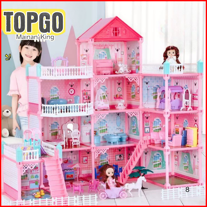 Mainan Anak Perempuan Rumah Boneka Besar 3d Princess Big Pink Villa Diy Doll House