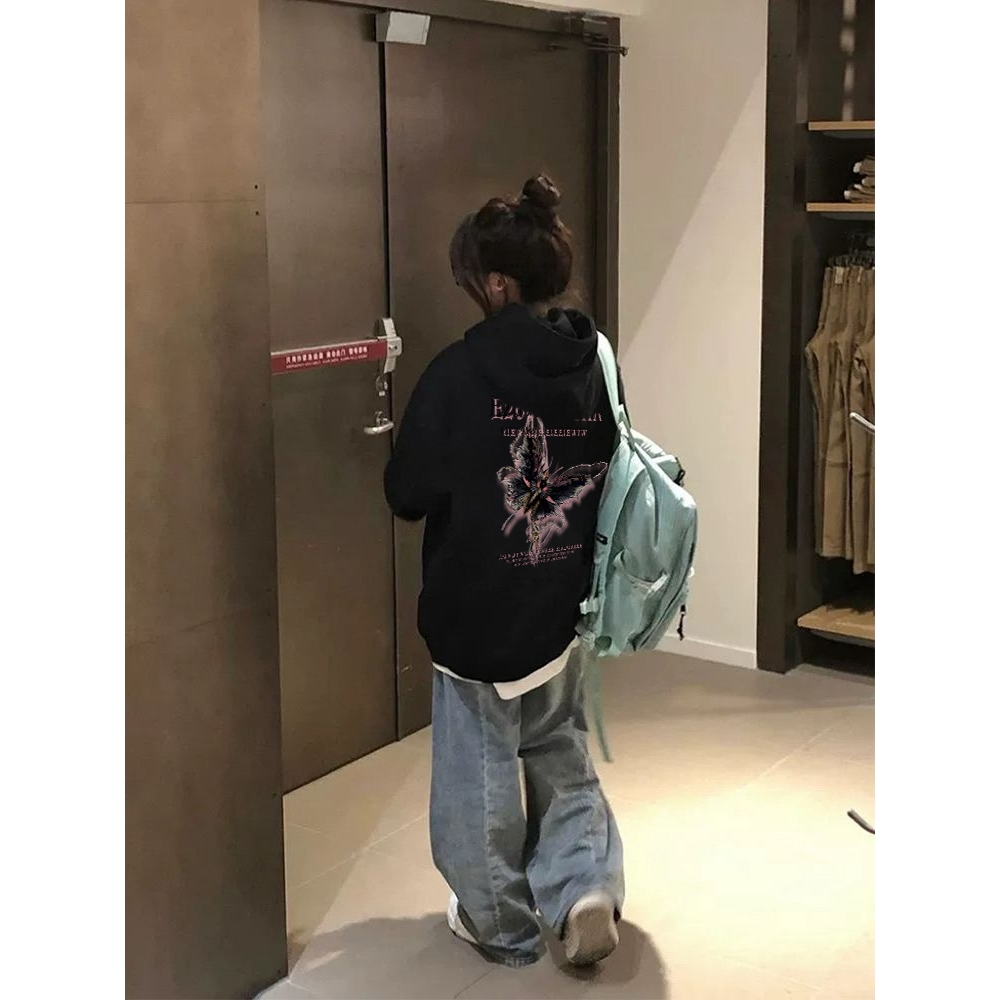 Po floret Sweater Hoodie Wanita Oversize Premium Baju Lengan Panjang Butterfly Print Atasan Kekinian