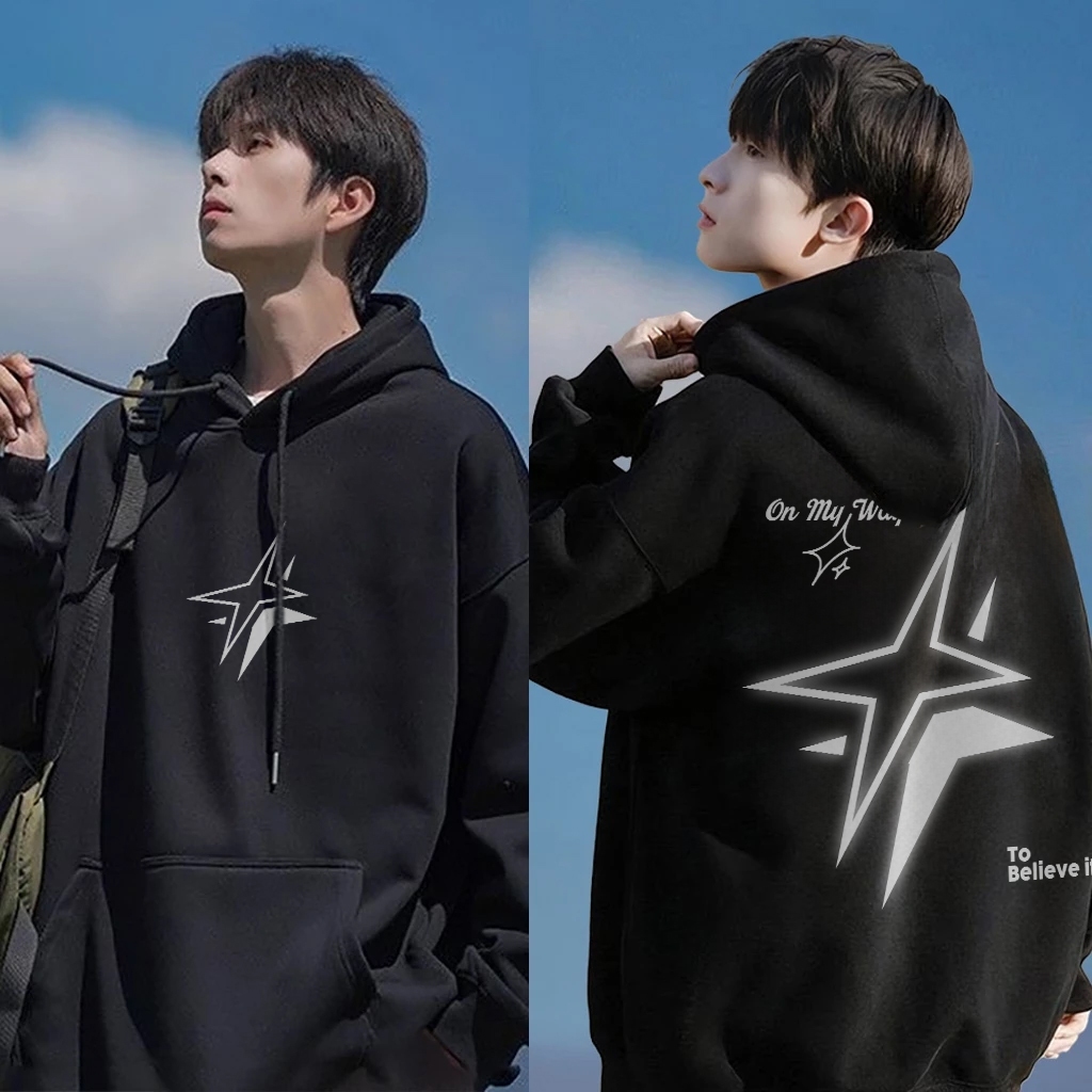 Disneay Hoodie Pria Oversize Pria | Pola Sablon “ Bersinar Di Bintang Berujung Empat | Vintage Amerika Hoodie Pria Keren Original 100 PERSEN | Hoodie Pria Premium