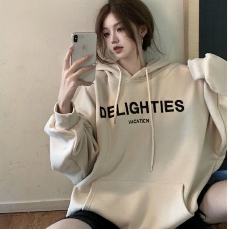 Sweater Hoodie Wanita Oversize | Delighties Vacation Size M.L.XL | Sweater Hoodie Wanita Korean Style