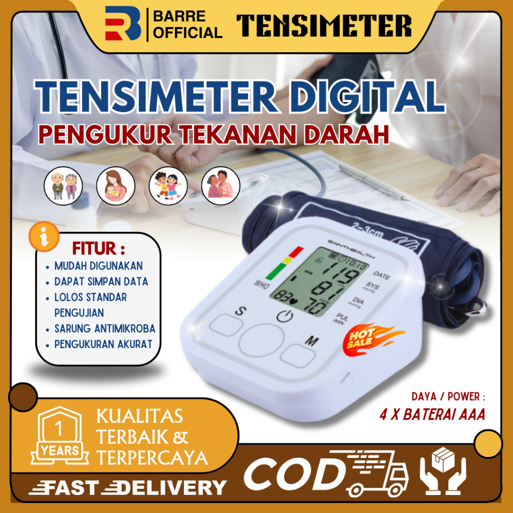 BARRE Tensimeter Tensi Meter Pengukur Tekanan Darah Blood Pressure Monitor Portable Digital Alat LCD