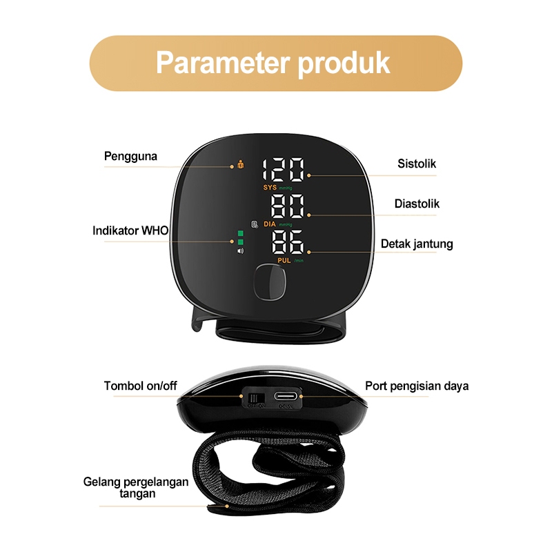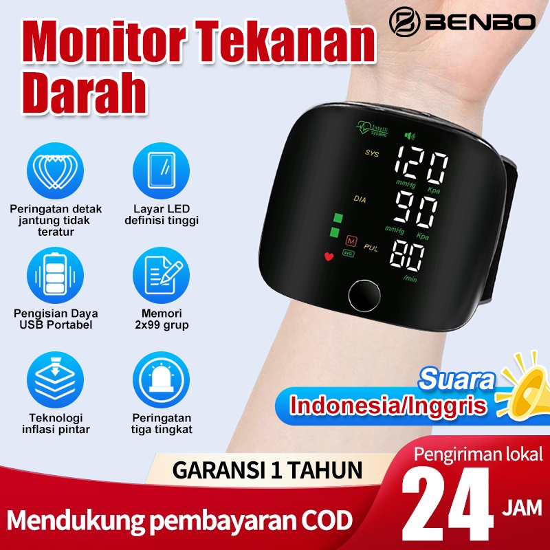 BENBO Monitor Tekanan Darah Elektronik Tipe Pergelangan Tangan Memori 2×99 grup/Tensimeter Digital Pergelangan Tangan -