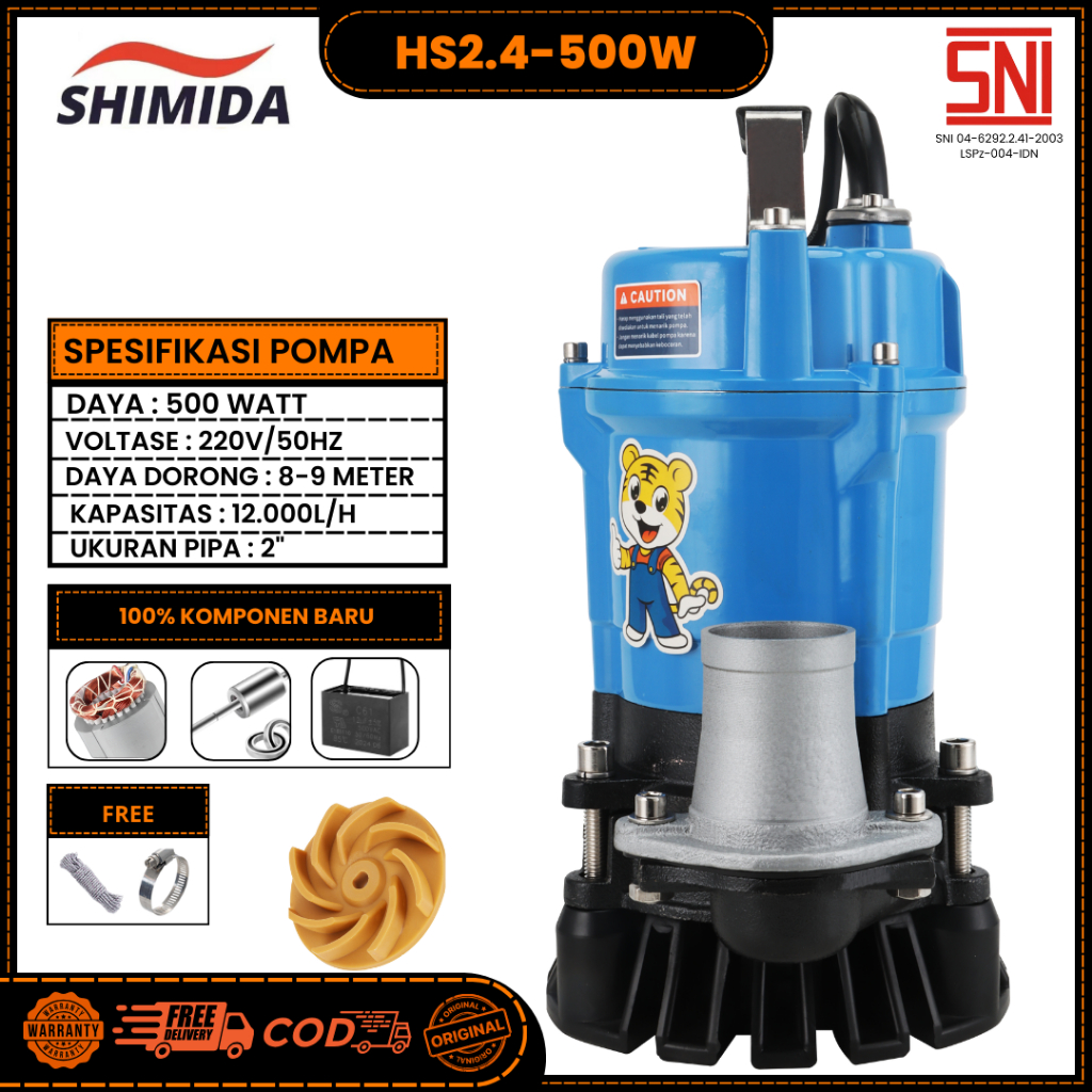 SHIMIDA Pompa Celup Air Kotor Bersih HS 2.4-500 Manual Otomatis Outlet 50mm 80mm Pompa Air Serba Guna Submersible Pump P