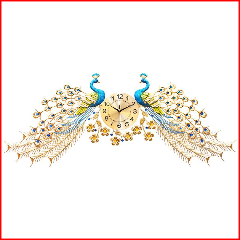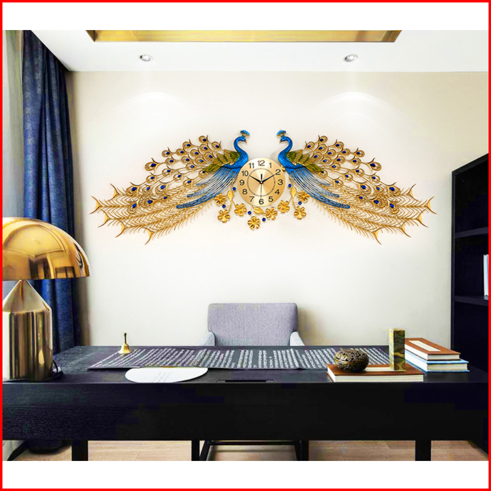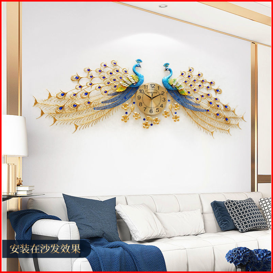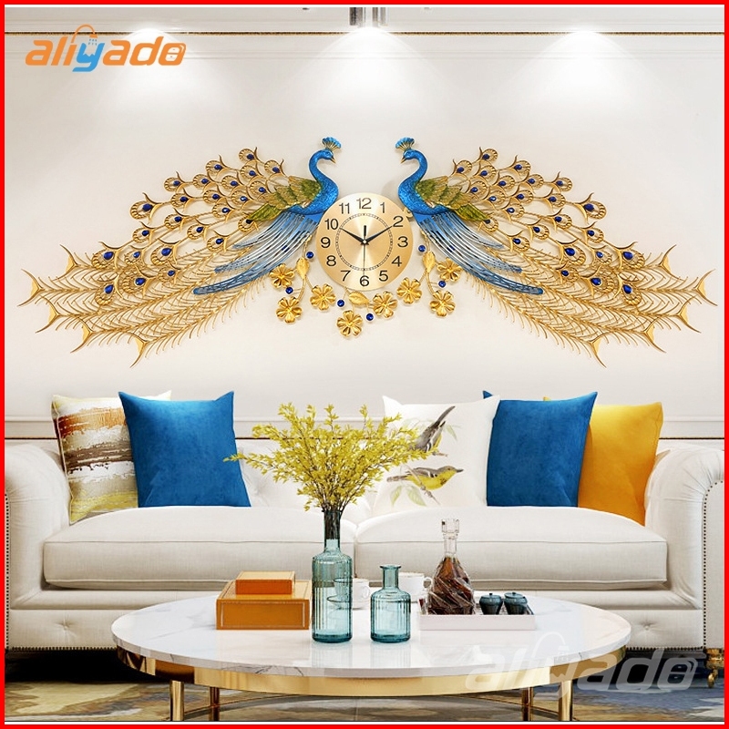 Jam Dinding Besar Merak Ruang Tamu 168 55cm Jam Dinding Mode Bisu Logam Jam Dinding Dekoratif Bergaya Atmosfer