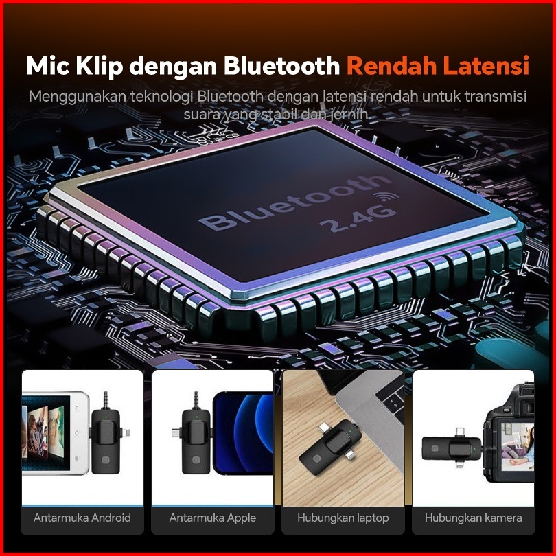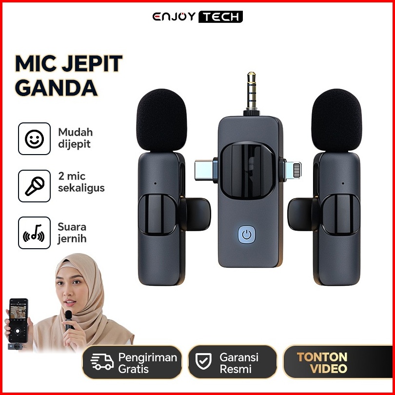 Mikrofon Lavalier 3 In 1 Mic Wireless Clip On 2 Microphone Wireless Clip On Noise Reduction Mikrofon Konten Kreator 3.5m