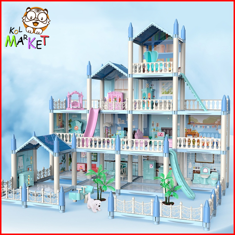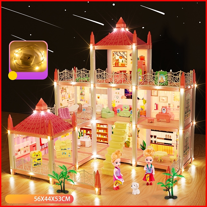 3d Princess Big Villa Diy Rumah Boneka Pink Castle Bermain Rumah Dengan Slide Yard Kit Dirakit Rumah Boneka Mainan Anak