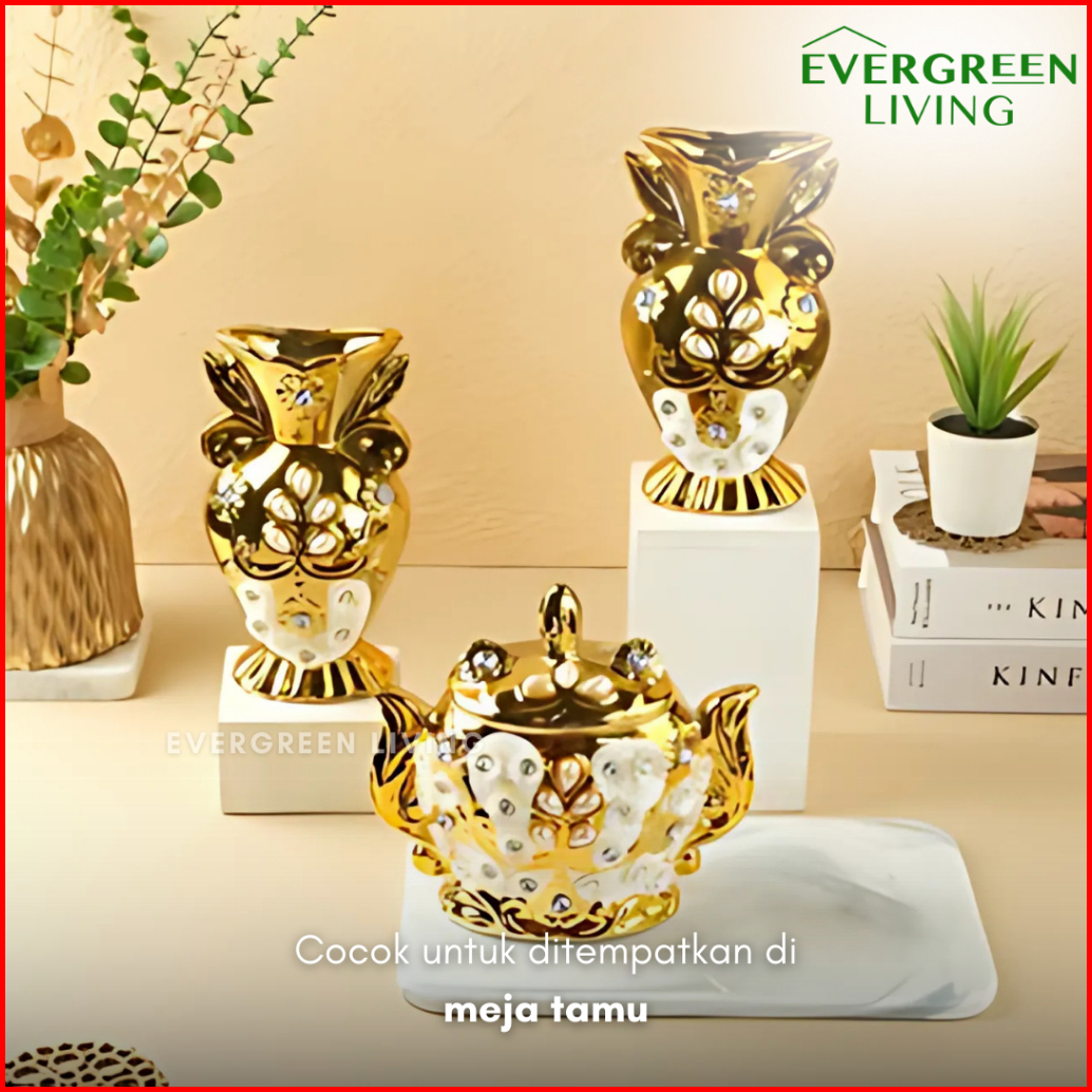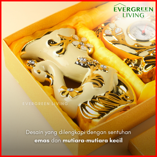 Evergreen Pajangan Patung Jam Angsa Mutiara Set 3 Pcs Hiasan Wedding Dekorasi Ruangan 3 In 1 Ornament Elegan Modern