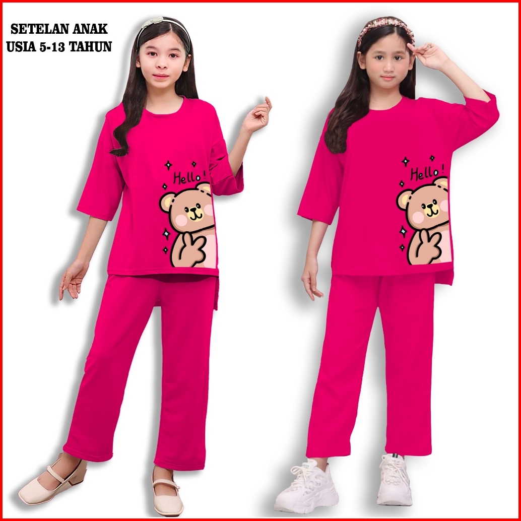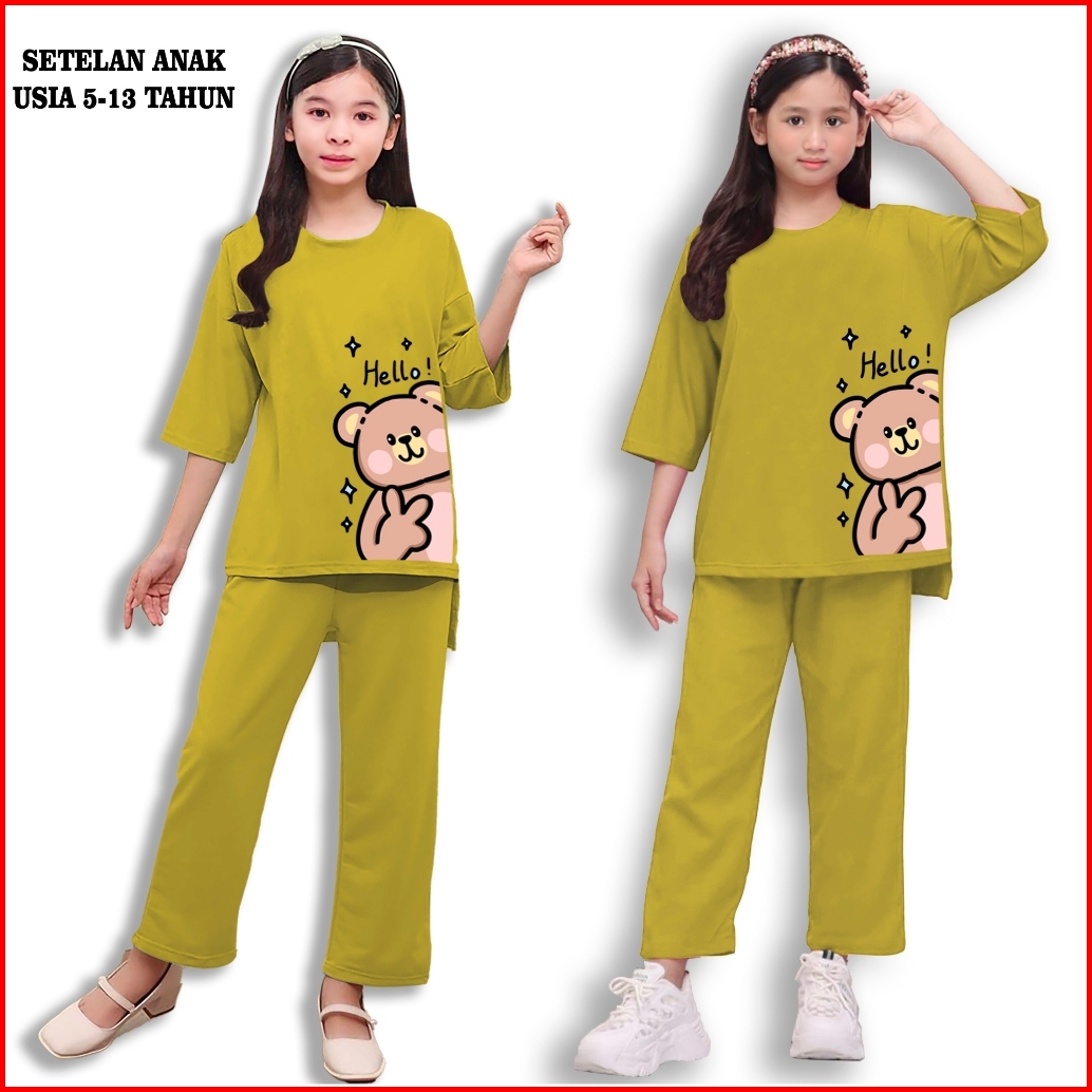 Setelan Anak Perempuan Bear Peace Side Usia 5-13 Tahun Setelan Anak Hoshi