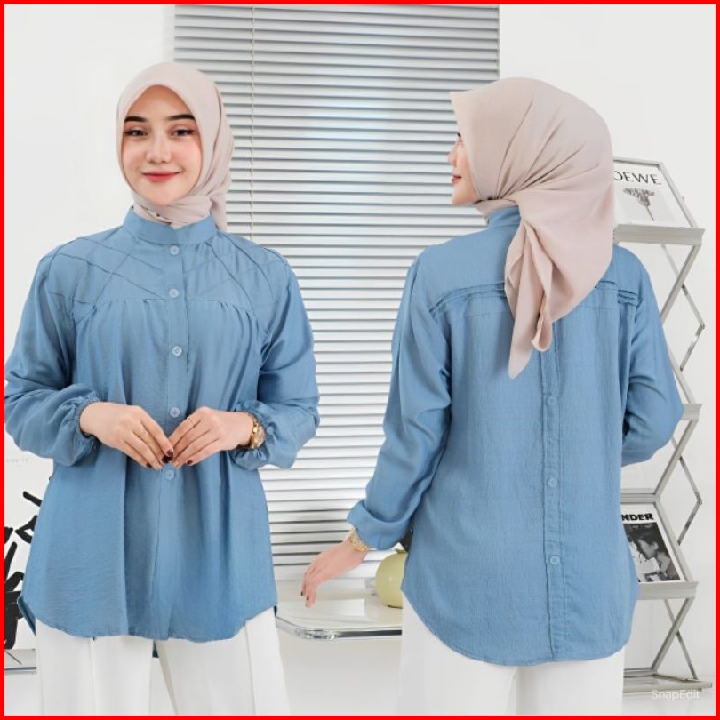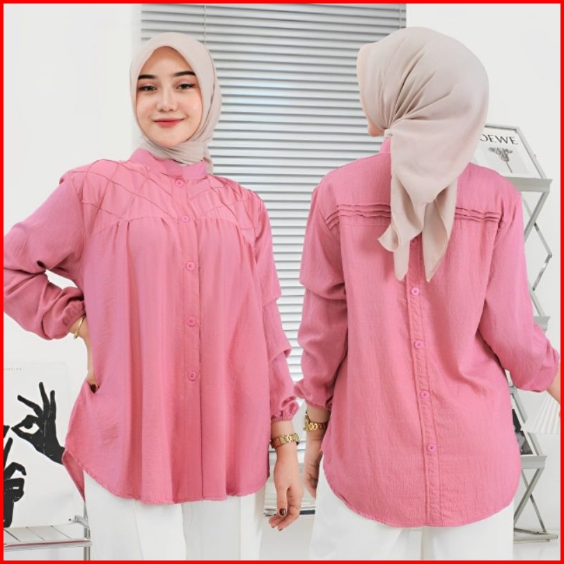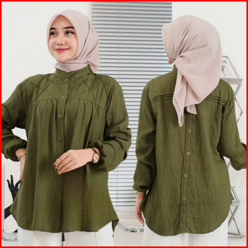 Baju Atasan Kemeja Wanita Laura Shirt Pollo Linen Lengan Panjang