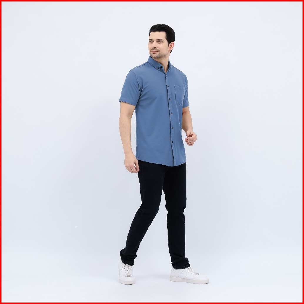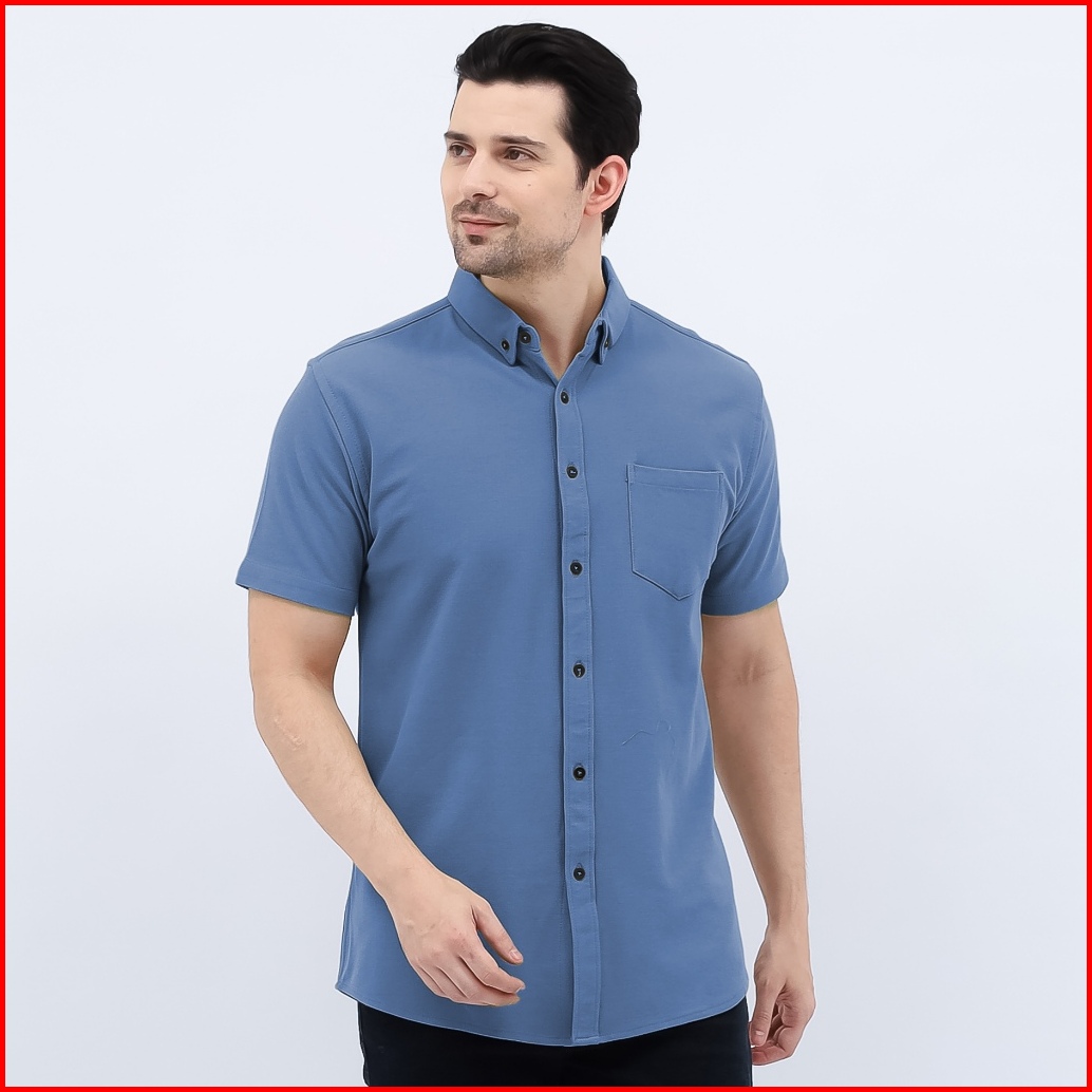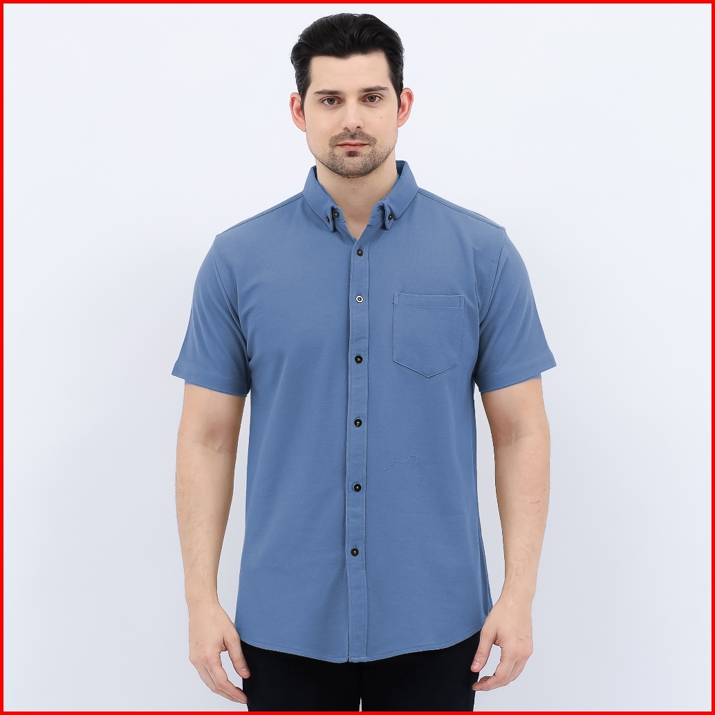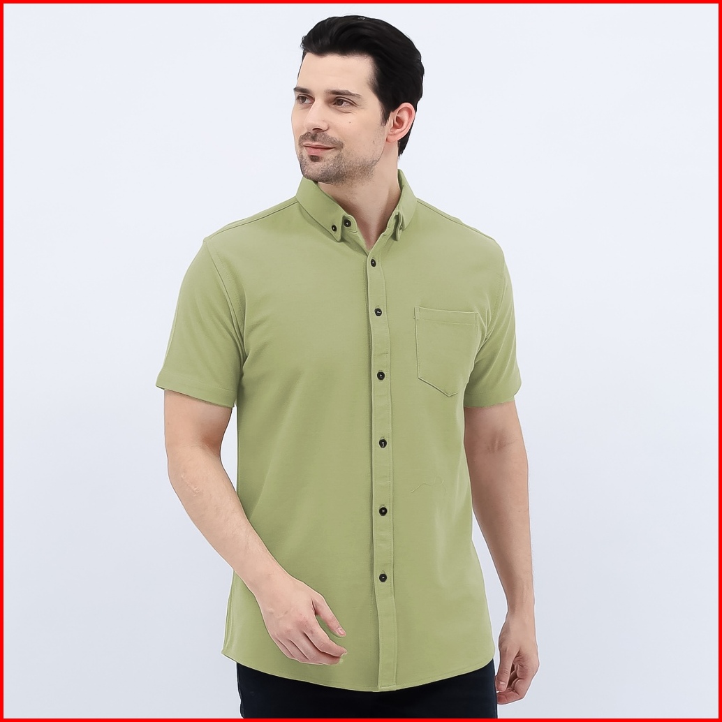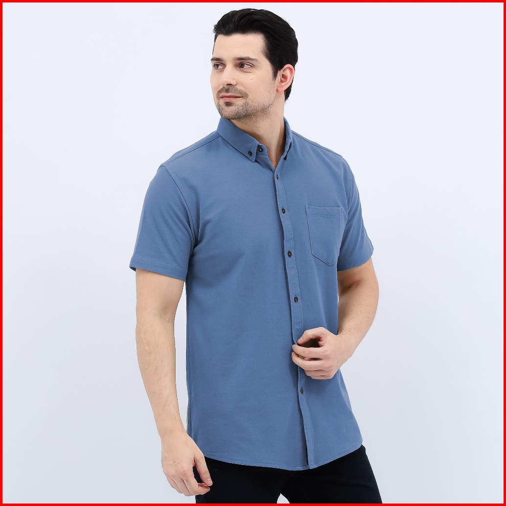 Kemeja Casual Pria Lengan Pendek Polos Formal Kantor Trendy Cotton Pique Premium Quality