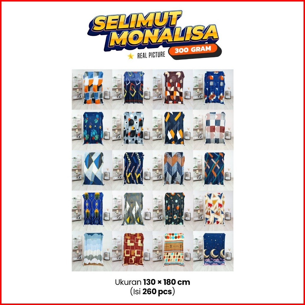 Monalisa Selimut Bulu Ukuran Dewasa Motif Karakter Abstrak 130x180 Cm 300 Gram