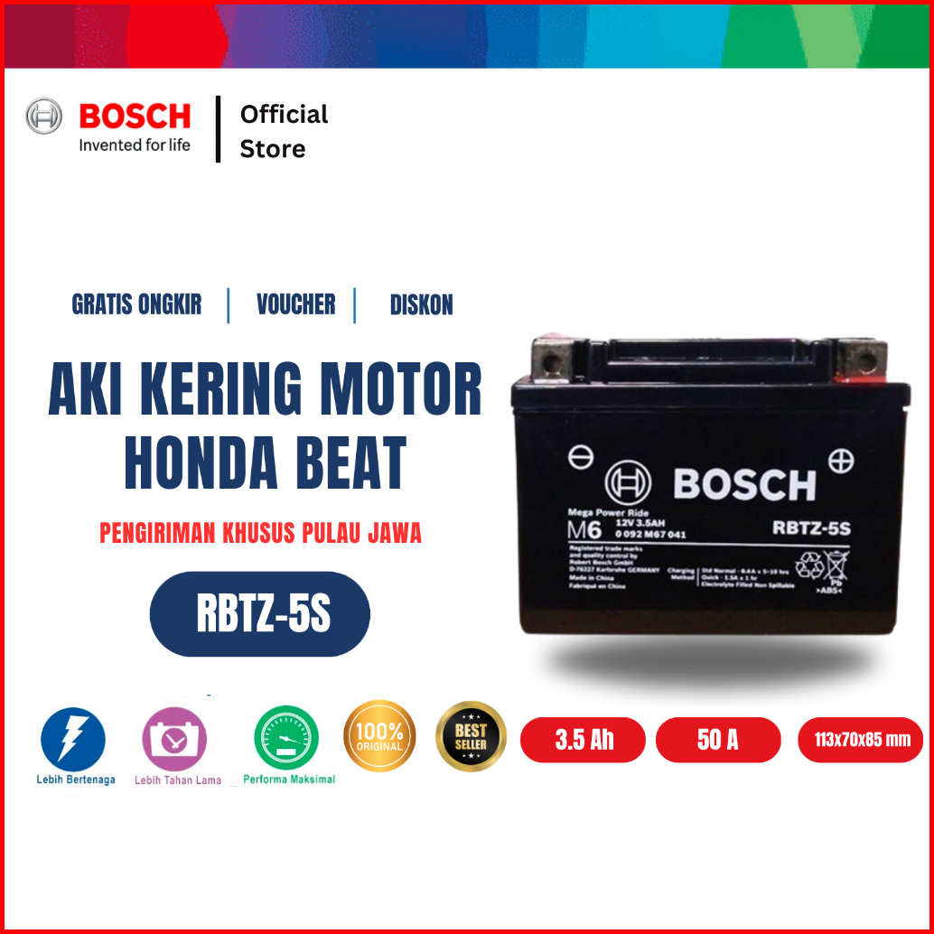 Bosch Aki Kering Motor Honda Beat Fi Beat Karbu Dan Beat Sporty - Maintenance Free - Rbtz-5s