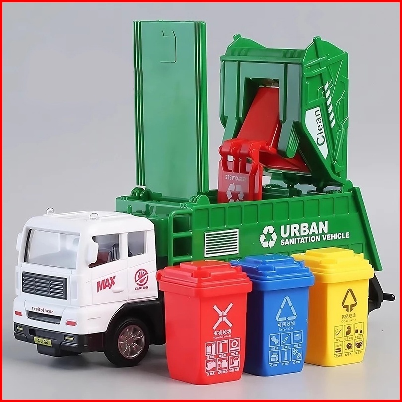 Mainan Diecast Mobil Metal Garbage Truck Truk Sampah Pull Back - Edukasi Kendaraan Kebersihan Kota
