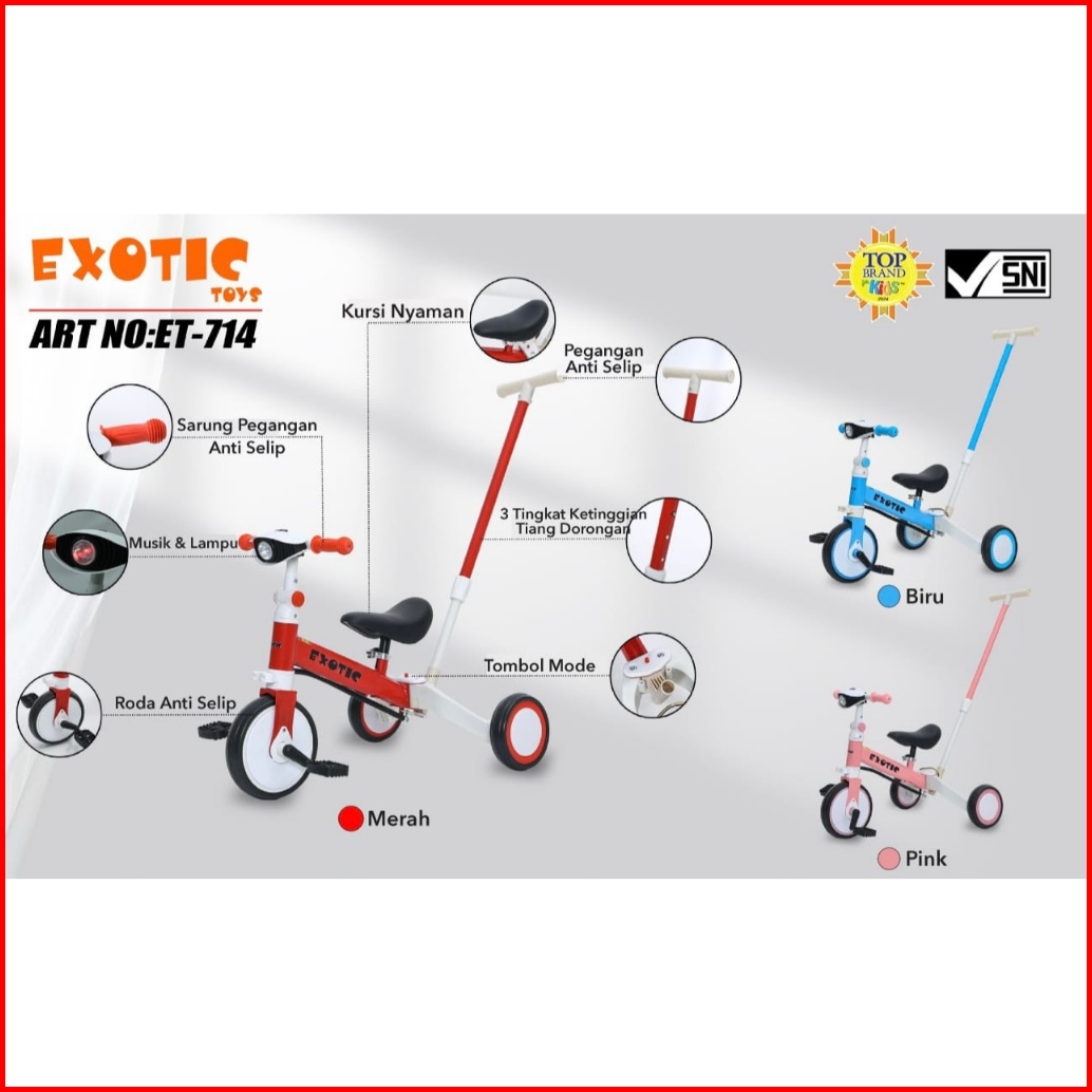 Sepeda Balance Bike Exotic Et709 Anak Roda Tiga Dorongan Sepeda Keseimbangan Bk01 Et714 Et5511
