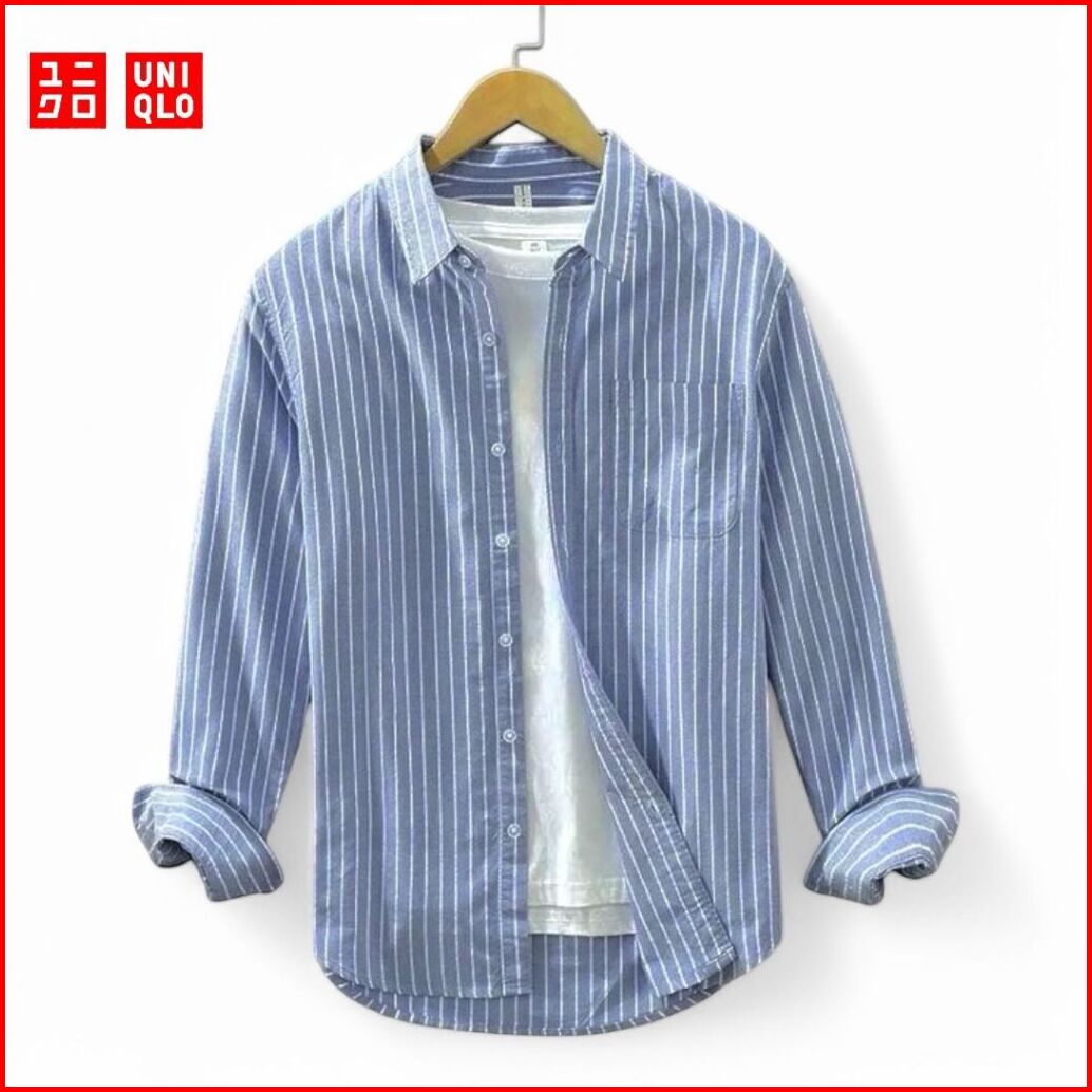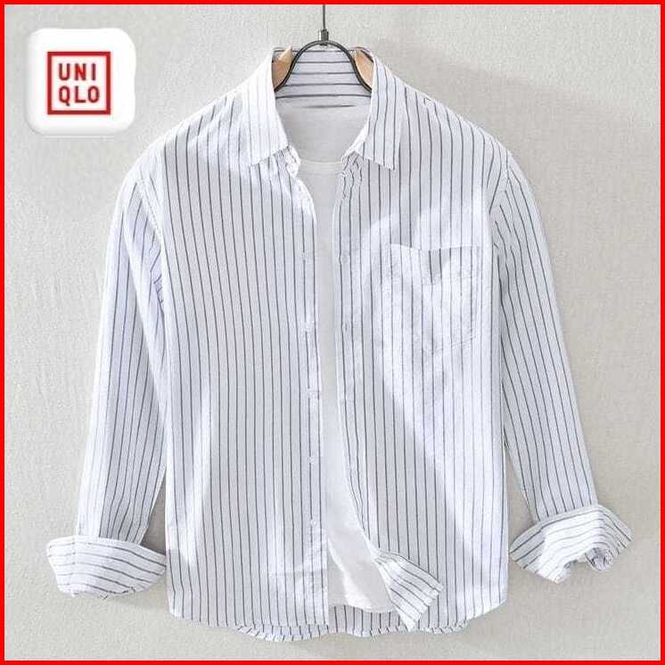 Kemeja Salur Pria Lengan Panjang Motif Salur Kecil Full Katun Premium Kemeja Stripe Kasual-formal