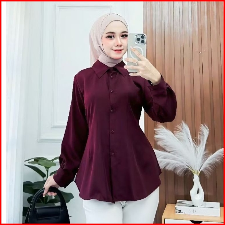 Dlts93 - Kemeja Wanita Lengan Panjang Blouse Polos Kerja Dan Kuliah Formal X Kasual Kekinian