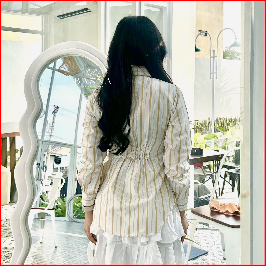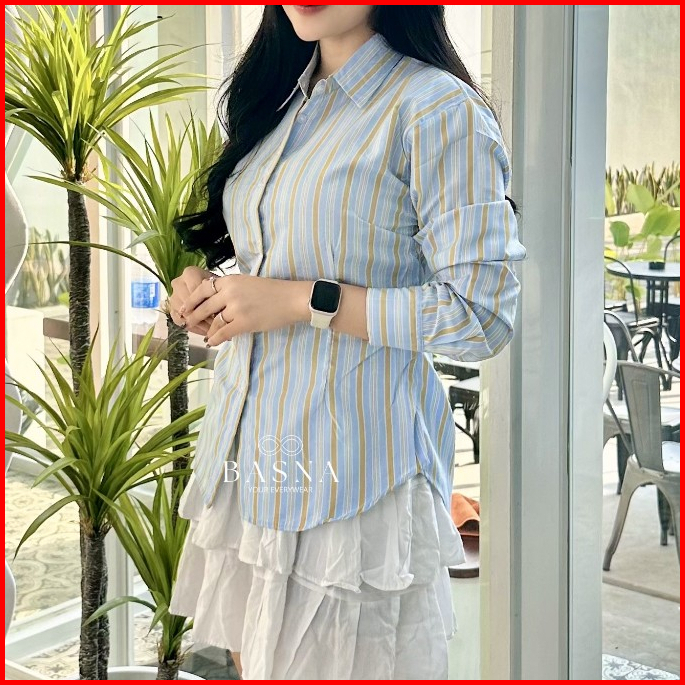 Sella Shirt - Kemeja Wanita Slimfit Kuliah Kekinian Kemeja Kerja Fit Stripe Garis Slimfit Kekinian