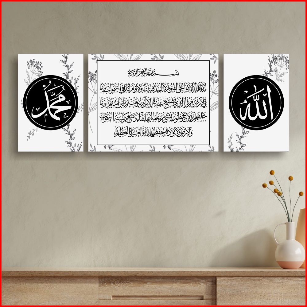 Hiasan Dekorasi Dinding Kaligrafi 1 Set Ayat Kursi Allah Muhammad - Hc